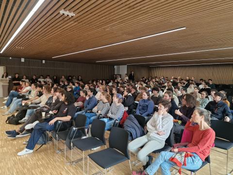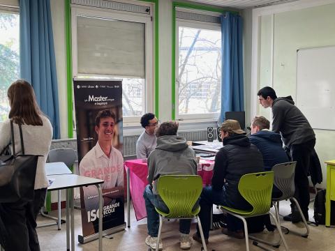 Deux mini conférences ont été organisées du côté des scientifiques pour présenter le parcours et le ressenti de Melvin Sdao (PSI - Centrale Marseille) et Justin Bimal (MP - Télécom Sud Paris) puis des stands ont favorisé les échanges.